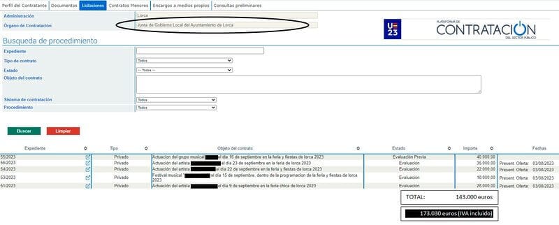 Además, ha subrayado en que “Fulgencio Gil dice que el Ayuntamiento de Lorca está en colapso, Fulgencio Gil dice que no hay dinero ni para la Feria Chica ni para la Grande, pero tal y como consta en el portal de contratación, el Gobierno que preside Fulgencio Gil, en las últimas dos semanas, ya se habría gastado en torno a 173.000 euros con la firma de, como mínimo, 5 de los conciertos que habrá en ambas ferias”.