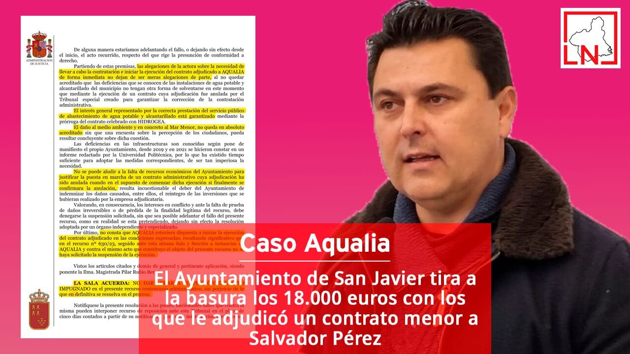 El Ayuntamiento de San Javier tira a la basura los 18.000 euros con los que le adjudicó un contrato menor a Salvador Pérez para el ‘Caso Aqualia’