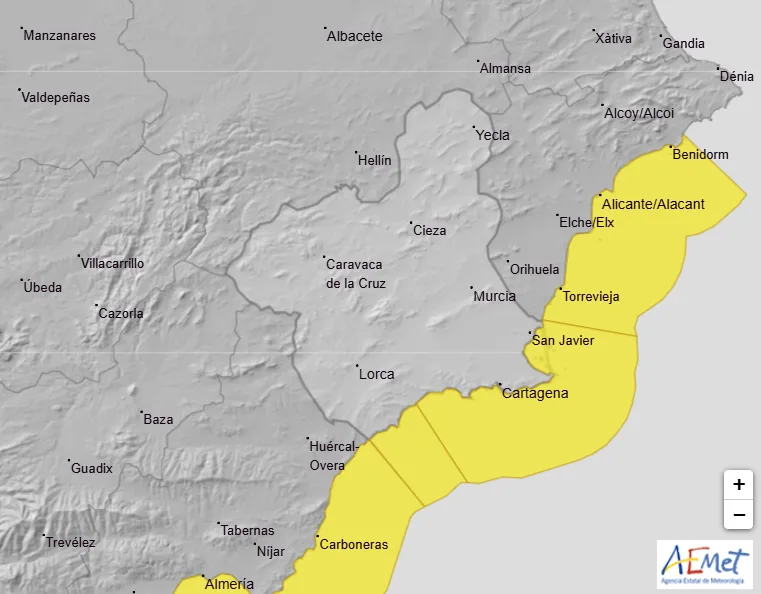 Para seguir en tiempo real los avisos meteorológicos activos en la Región de Murcia, puede consultarse la web oficial de AEMET en www.aemet.es.