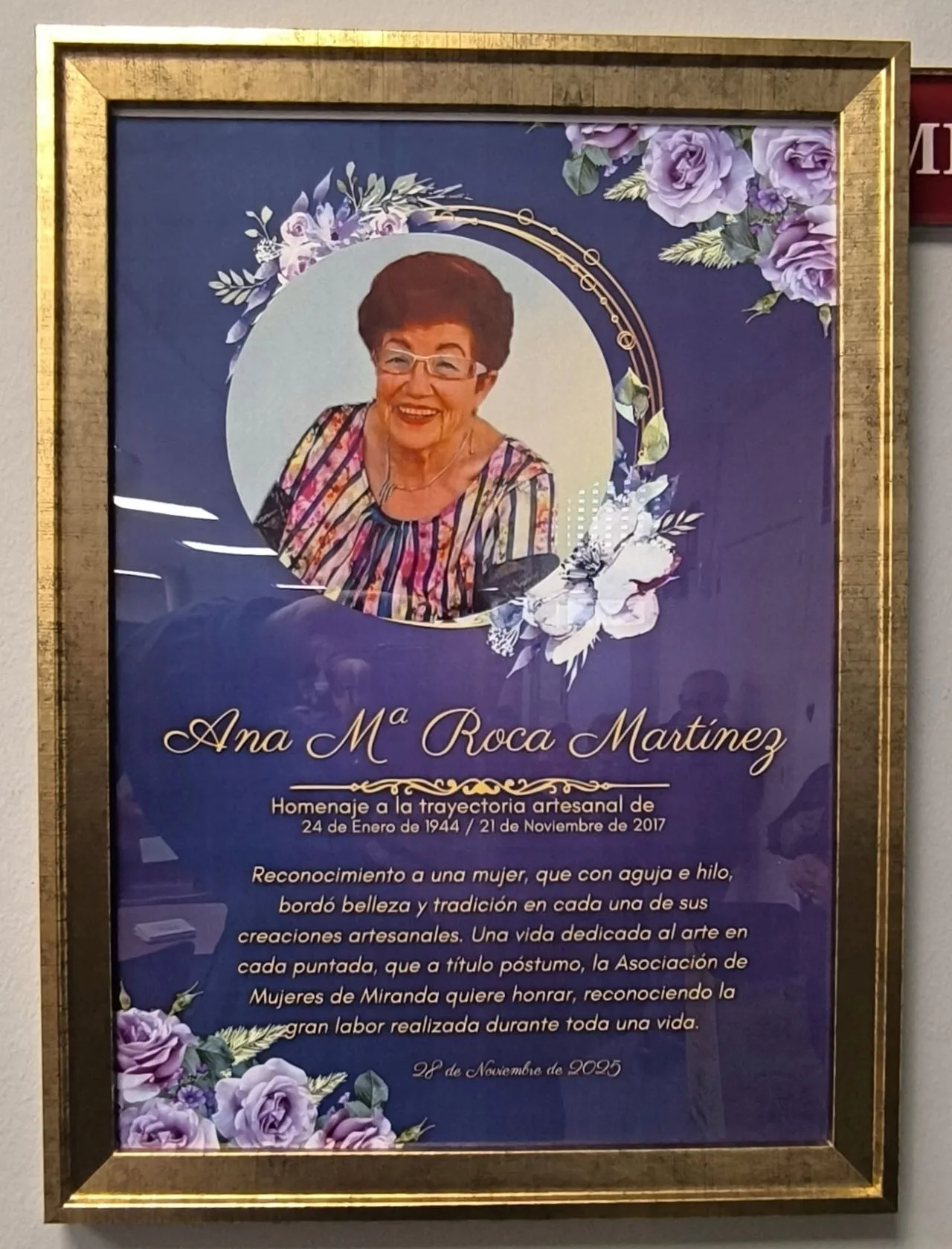 El homenaje y la exposición “Hilos que cuentan historias” se han convertido así en un reconocimiento colectivo a la memoria, el talento y la entrega de una mujer cuyo legado artístico y humano forma ya parte del patrimonio emocional de Miranda.