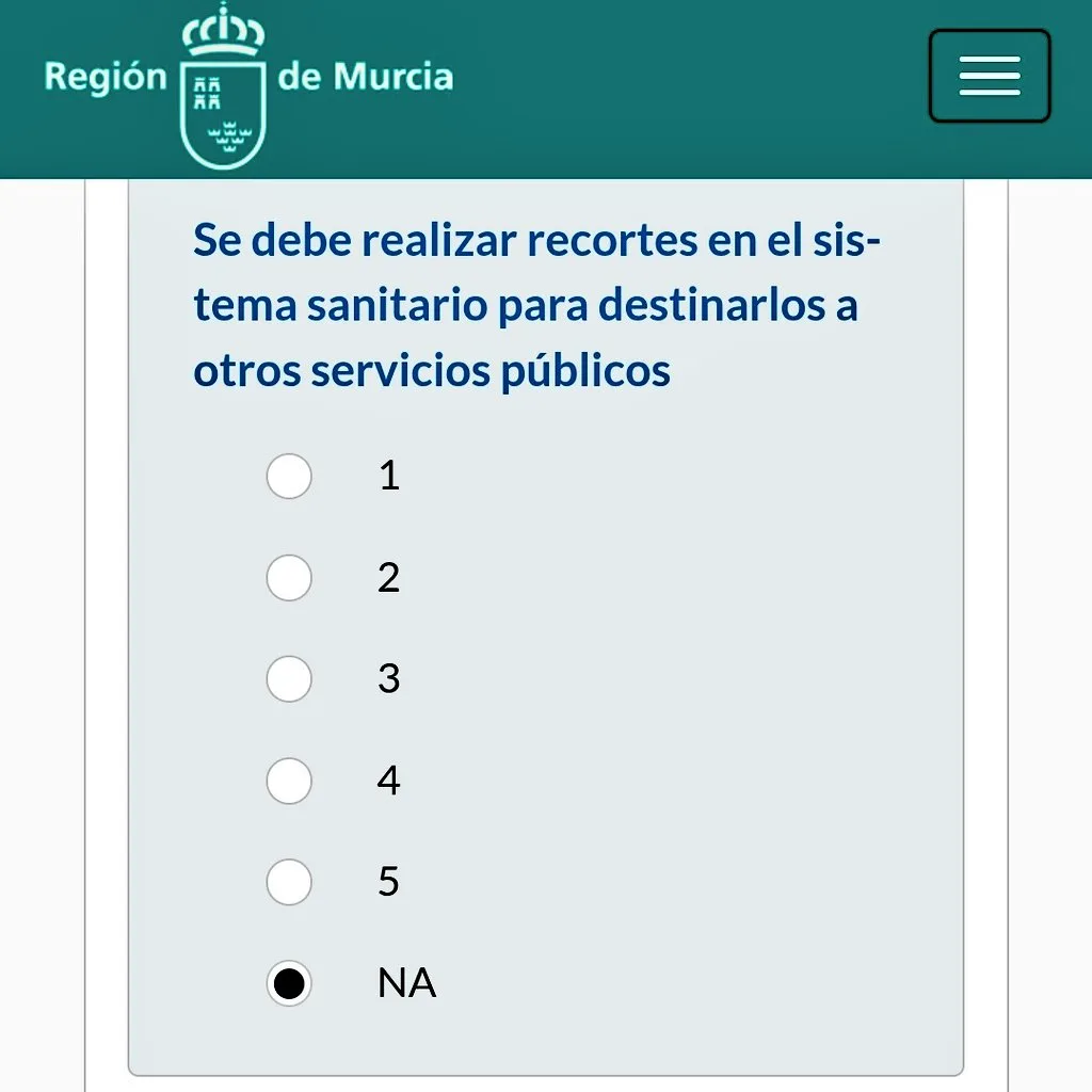 Dentro de ese proceso se han articulado distintos instrumentos de participación, entre ellos la encuesta ahora cuestionada. Desde el Ejecutivo autonómico se insiste en que la consulta busca conocer la opinión de la población murciana sobre distintos enunciados relacionados con la sanidad y los servicios públicos. Sin embargo, la forma en que se plantean algunas preguntas introduce dudas sobre el verdadero objetivo del ejercicio participativo.