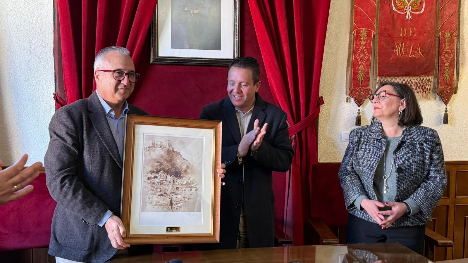 La recepción estuvo presidida por el alcalde de Mula, acompañado por la concejala de Política Social, y contó con la presencia de representantes de la Cofradía de la Vera Cruz de Caravaca de la Cruz y de la Hermandad del Carmen de Mula. El encuentro se enmarca en el acuerdo de hermanamiento alcanzado por ambas entidades, con el objetivo de estrechar relaciones y fomentar la colaboración en torno a la devoción, las tradiciones y la vida cultural vinculada a la Semana Santa y a las manifestaciones religiosas populares.